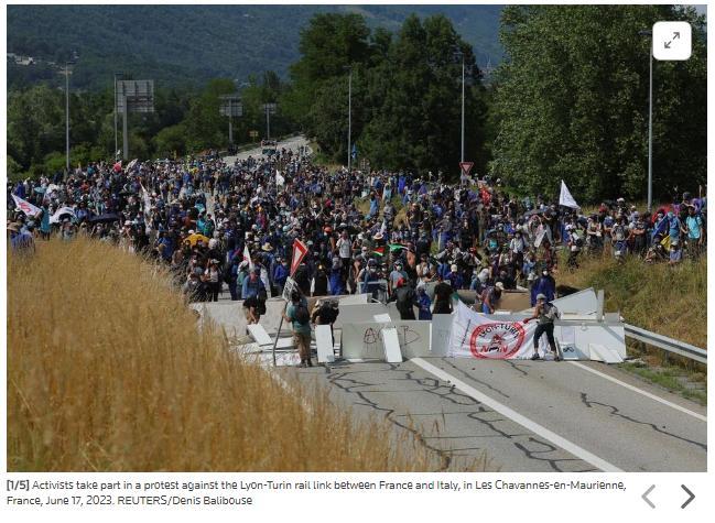 據(jù)報道,當(dāng)天,大約2000名抗議者聚集在阿爾卑斯山地區(qū)的莫里耶訥河谷,反對當(dāng)局在當(dāng)?shù)匦藿ǜ哞F。據(jù)介紹,這條高鐵計劃連接法國里昂和意大利,線路途經(jīng)阿爾卑斯山地區(qū)。
