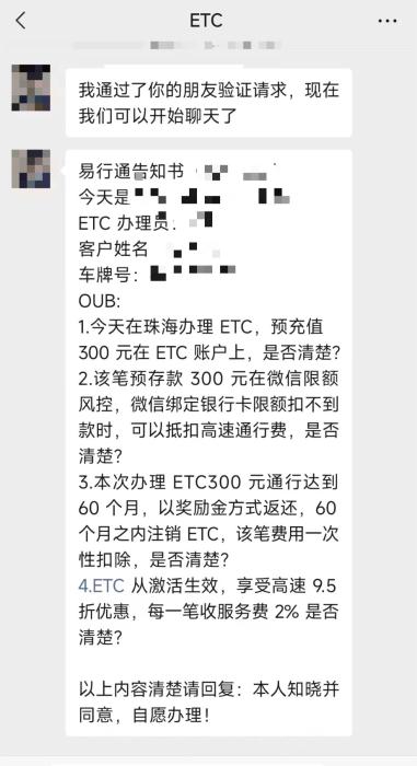 黃斌辦理ETC結束后,地推人員發(fā)給黃斌的易行通告知書(央廣網(wǎng)發(fā) 受訪者供圖)