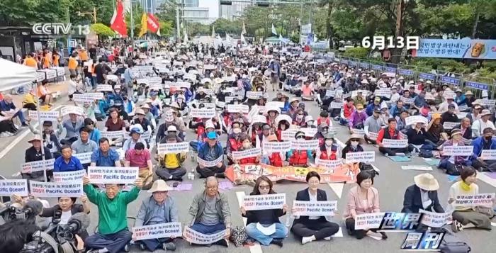 來自國際社會(huì)的反對(duì)之聲更加強(qiáng)烈。 6月13日,韓國漁民在首爾集會(huì),反對(duì)日本政府的核污染水排海計(jì)劃。