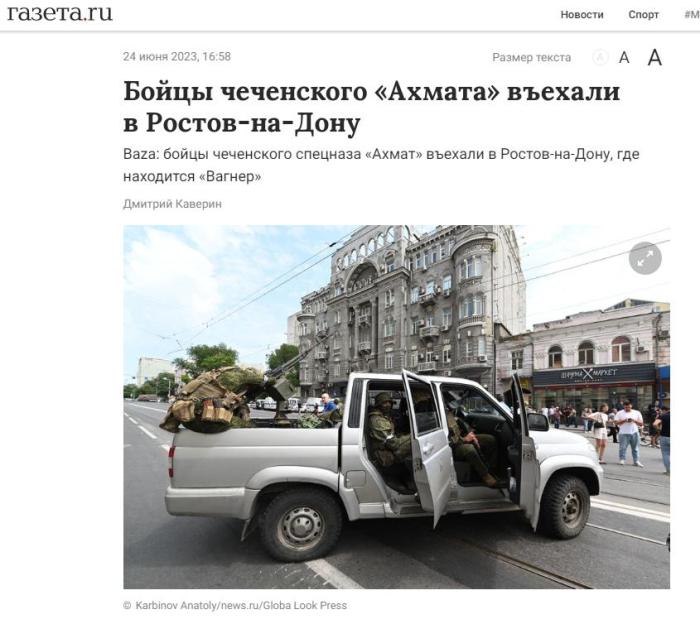 中新網(wǎng)6月24日電 據(jù)俄羅斯《報紙報》援引社交媒體消息,當(dāng)?shù)貢r間24日,俄羅斯車臣“阿赫馬特”特種部隊已進入頓河畔羅斯托夫地區(qū)。當(dāng)日早間,俄雇傭兵組織“瓦格納”集團進入該地。