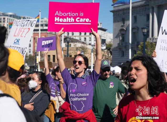 資料圖:當?shù)貢r間2022年6月24日,美國舊金山民眾聚集在市政廳前,抗議美聯(lián)邦最高法院推翻“羅訴韋德案”。中新社記者 劉關關 攝