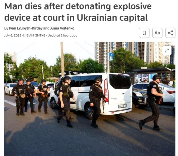 中新網(wǎng)7月6日電 綜合法新社、路透社報(bào)道,烏克蘭內(nèi)務(wù)部長克利門科表示,初步消息顯示,當(dāng)?shù)貢r(shí)間5日,一名男子在烏克蘭基輔一家法院引爆了爆炸裝置。