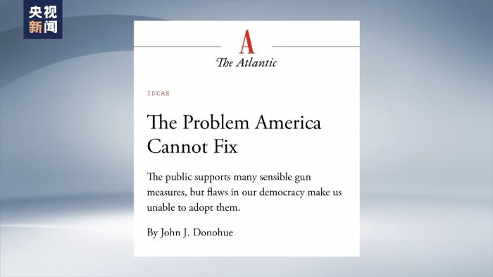 今年4月,斯坦福大學法學院教授約翰·多諾霍在《大西洋月刊》上刊文表示,槍支暴力已成為“美國無力解決的問題”。他表示,大規(guī)模槍擊事件是一個嚴重且日益惡化的問題,給公眾帶來了沉重的負擔,同時“也說明了美國政治體系在采納眾多受歡迎的公共政策策略方面的無能為力”,這是美國的“國家恥辱”。如果美國政客仍拒絕傾聽民眾的呼聲,美國人恐怕永遠難以安心慶?!蔼毩⑷铡?。(央視新聞客戶端)