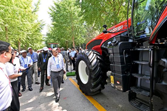 7月6日,駐華使節(jié)在國機(jī)集團(tuán)中國農(nóng)機(jī)院參觀“東方紅”拖拉機(jī)。新華社記者 李鑫 攝