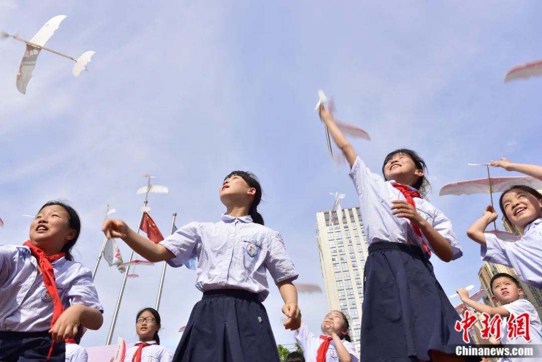 安徽合肥小學生放飛飛機模型。葛宜年 攝