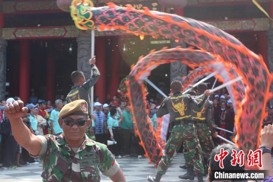 舞龍舞獅作為中國(guó)民間傳統(tǒng)文化,其藝術(shù)形式已成為世界通行的“文化語(yǔ)言”。印尼軍方一些連隊(duì)也喜歡舞龍運(yùn)動(dòng),因?yàn)槲椠埐粌H可培養(yǎng)勇敢和團(tuán)隊(duì)精神,還能讓士兵們步伐靈活、動(dòng)作協(xié)調(diào)一致,同時(shí)又具有很強(qiáng)的娛樂(lè)性。去年10月,印尼龍獅運(yùn)動(dòng)聯(lián)合總會(huì)在日惹舉辦了印尼全國(guó)龍獅大賽,印尼軍方派出多支代表隊(duì)參賽。今年3月,北蘇門(mén)答臘省龍獅分會(huì)在棉蘭舉辦國(guó)際舞獅大賽,當(dāng)?shù)剀姺揭才沙鑫椠堦?duì)到場(chǎng)表演。
