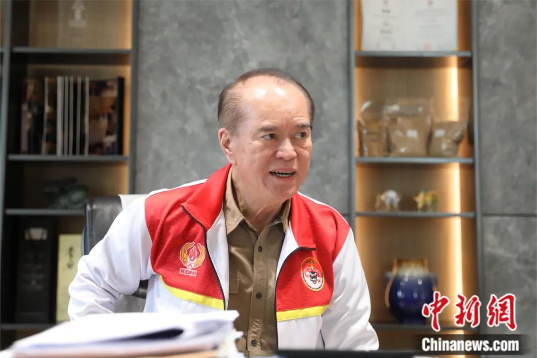 印尼龍獅運(yùn)動(dòng)聯(lián)合會(huì)總主席丘昌仁在雅加達(dá)接受中新社“東西問(wèn)”欄目專(zhuān)訪(fǎng)。李志全 攝