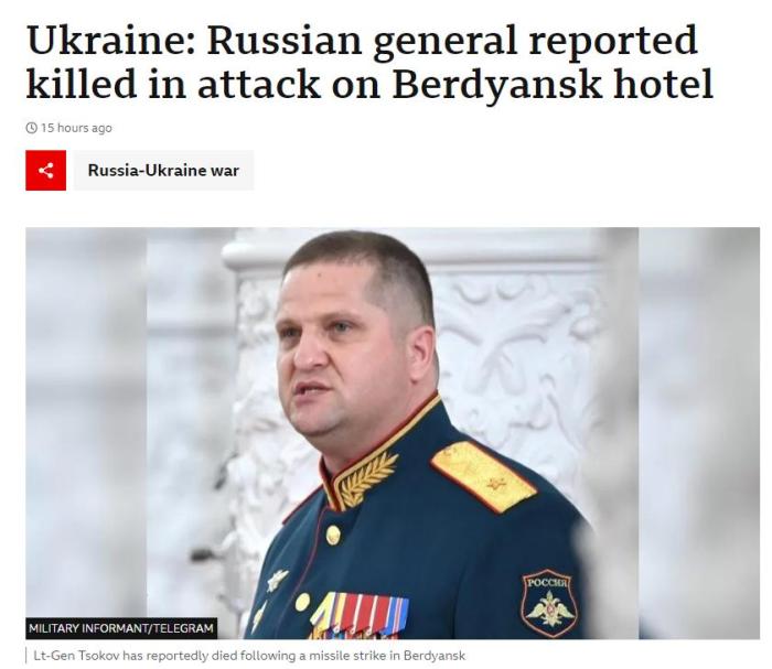 據(jù)報(bào)道,古魯廖夫稱,措科夫在別爾江斯克下榻的酒店遭到轟炸,“英勇犧牲”。