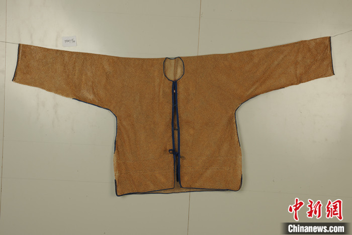據(jù)安徽博物院副研究館員吳艷介紹,在元代就有關(guān)于竹汗衫的記載,由極細(xì)小的竹絲制成,因竹細(xì)如絲,亦稱“竹絲衣”。各地竹汗衫的型制較為固定,或?qū)篑R褂,或?qū)篑R甲,衣服邊緣處均用布料鑲邊,長(zhǎng)袖衫腋窩處為了服帖,沒有直接無縫編織,而是開口再縫合。