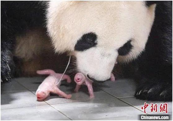 當(dāng)?shù)貢r(shí)間2023年7月7日,大熊貓“愛寶”在韓國三星愛寶樂園產(chǎn)下雙胞胎幼崽。圖為“愛寶”與幼崽?!?韓國三星愛寶樂園供圖)