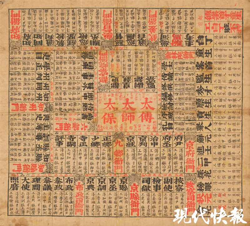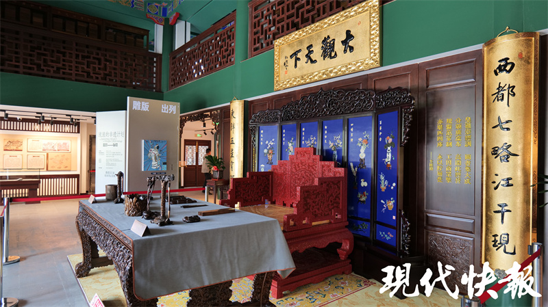館內鴛鴦廳為“何以狀元”主題展廳,通過實物展品再現(xiàn)古代科舉流程,介紹了一個狀元是如何誕生的。現(xiàn)代快報記者了解到,2001年,在整修鴛鴦廳時,曾在上方發(fā)現(xiàn)一方被后人所加“吊頂”遮住的匾。潘世恩高中狀元后,為官五十余年,歷經四朝,深得皇帝恩寵,被譽為“三百年間第一福氣之人”。每逢大壽,皇帝都會親賜御匾。后經專家考證,該匾即是道光皇帝于潘世恩六十大壽之時御筆賞賜的黑底盤龍金書方匾。