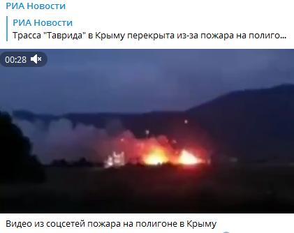 社交媒體上發(fā)布的視頻顯示克里米亞一訓(xùn)練場(chǎng)發(fā)生火災(zāi)。圖片來(lái)源:俄新社社交媒體截圖