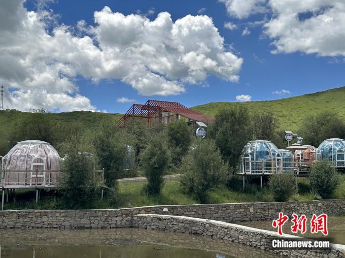 在園區(qū)內(nèi),除了大面積的草場,還能看見一些臨水而建、顏色各異的圓形房間。王春貴介紹稱,那是供游客休閑的星空房。目前,紅原牦?,F(xiàn)代農(nóng)業(yè)園區(qū)正朝著牧旅融合的道路發(fā)展,咖啡屋、星空房等休閑設施以及牧旅融合體驗區(qū)已初步建設完成?!叭拷ǔ梢院?,游客還能在園區(qū)內(nèi)體驗牦牛喂養(yǎng)?!蓖醮嘿F說。