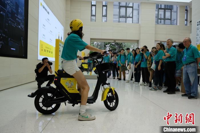 臺(tái)生體驗(yàn)小遛共享電單車?!≈行律缬浾?林波攝