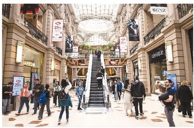 人們在阿根廷首都布宜諾斯艾利斯佛羅里達(dá)大街上的一座購物中心內(nèi)游覽。