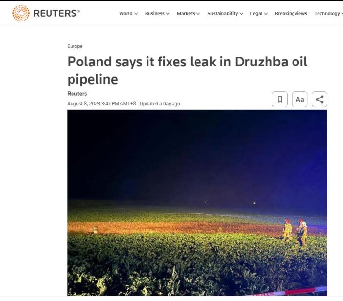 中新網(wǎng)8月8日電 據(jù)路透社報(bào)道,當(dāng)?shù)貢r間8日,波蘭石油管道運(yùn)營商PERN稱已修復(fù)德魯日巴輸油管道,恢復(fù)正常運(yùn)營。