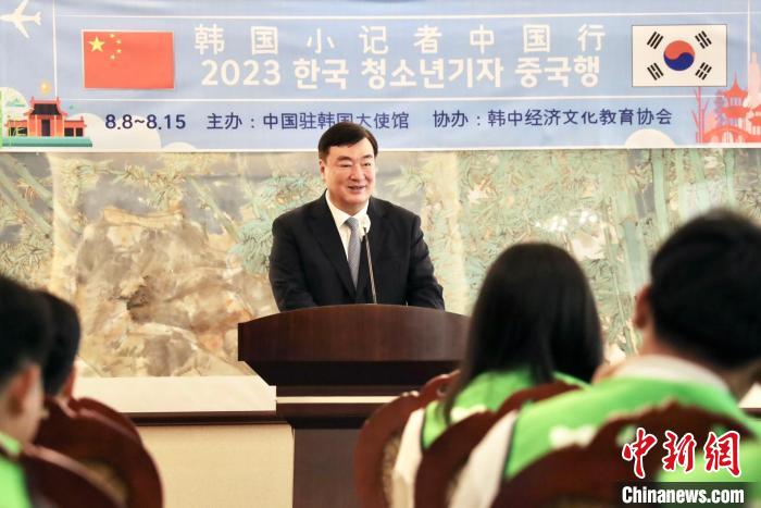 8日,“2023韓國(guó)小記者中國(guó)行”活動(dòng)在首爾舉行啟程儀式。圖為中國(guó)駐韓國(guó)大使邢海明致辭。中國(guó)駐韓國(guó)大使館供圖