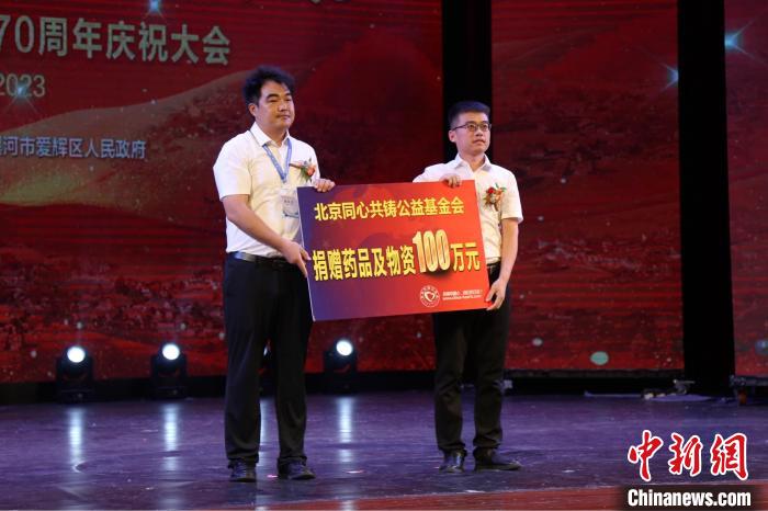 此次健康公益活動(dòng)由北京同心共鑄公益基金會(huì)主辦?;顒?dòng)正逢愛輝區(qū)新生鄂倫春族鄉(xiāng)鄂倫春族同胞下山定居70周年,受愛輝區(qū)委區(qū)政府邀請(qǐng),北京同心共鑄公益基金會(huì)攜醫(yī)務(wù)志愿者、社會(huì)愛心人士參加了當(dāng)?shù)嘏e辦的相關(guān)慶?;顒?dòng)。其間,基金會(huì)向愛輝區(qū)捐贈(zèng)價(jià)值100萬(wàn)元人民幣的藥品及物資,基金會(huì)秘書長(zhǎng)殷延志獲評(píng)為助力愛輝區(qū)鄂倫春族發(fā)展“貢獻(xiàn)杰出人物”。