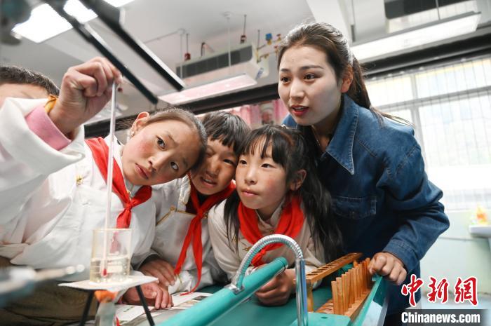 5月18日,四川阿壩州壤塘縣寄宿制學(xué)校學(xué)生在科學(xué)課做實驗。 中新社記者 安源 攝