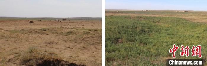 僅僅兩三年以后,退化放牧場植被蓋度就增加到40-60%,干草產(chǎn)量提高50%以上;退化打草場植被蓋度平均提高15-20%,干草產(chǎn)量平均提高20-40%;嚴重沙化草地植被蓋度達到40-50%或以上,風(fēng)蝕得以控制,周邊環(huán)境得到明顯好轉(zhuǎn)。