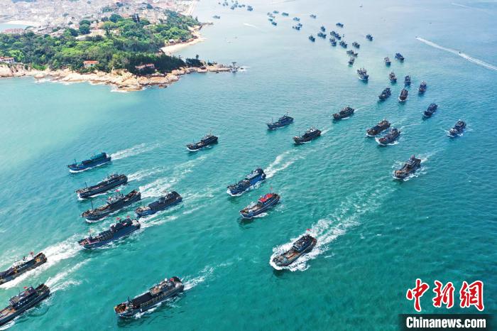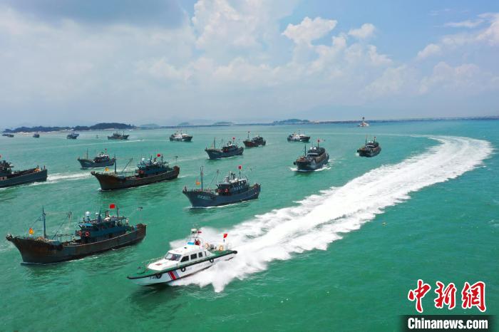 中新網(wǎng)漳州8月16日電(蔡曉曄)16日12時起,北緯26度30分以南的東海結束為期3個半月的伏季休漁期,在福建省漳州市各碼頭,眾多漁船在海警艦艇的護航下有序駛離漁港,千帆競發(fā)奔赴不同漁區(qū)開展捕撈作業(yè)。