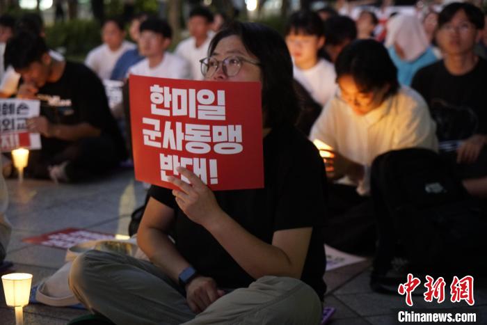 18日晚間,韓國民間團體“停戰(zhàn)70年朝鮮半島和平行動”在首爾光化門廣場附近舉行燭光集會,抗議韓美聯合軍演,反對韓美日加強軍事合作。