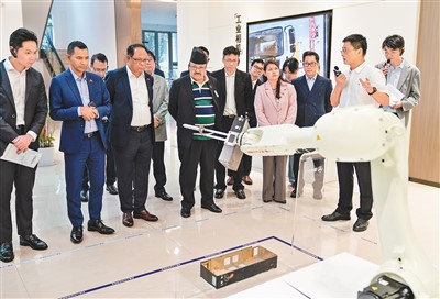 在自動檢測產(chǎn)品外觀缺陷的視覺質(zhì)檢機(jī)器人前,使節(jié)們停下腳步,饒有興致地觀看?;瘕堈f:“在數(shù)字經(jīng)濟(jì)推動下,人工智能等技術(shù)與傳統(tǒng)工業(yè)深度結(jié)合,讓人耳目一新?!?/p>