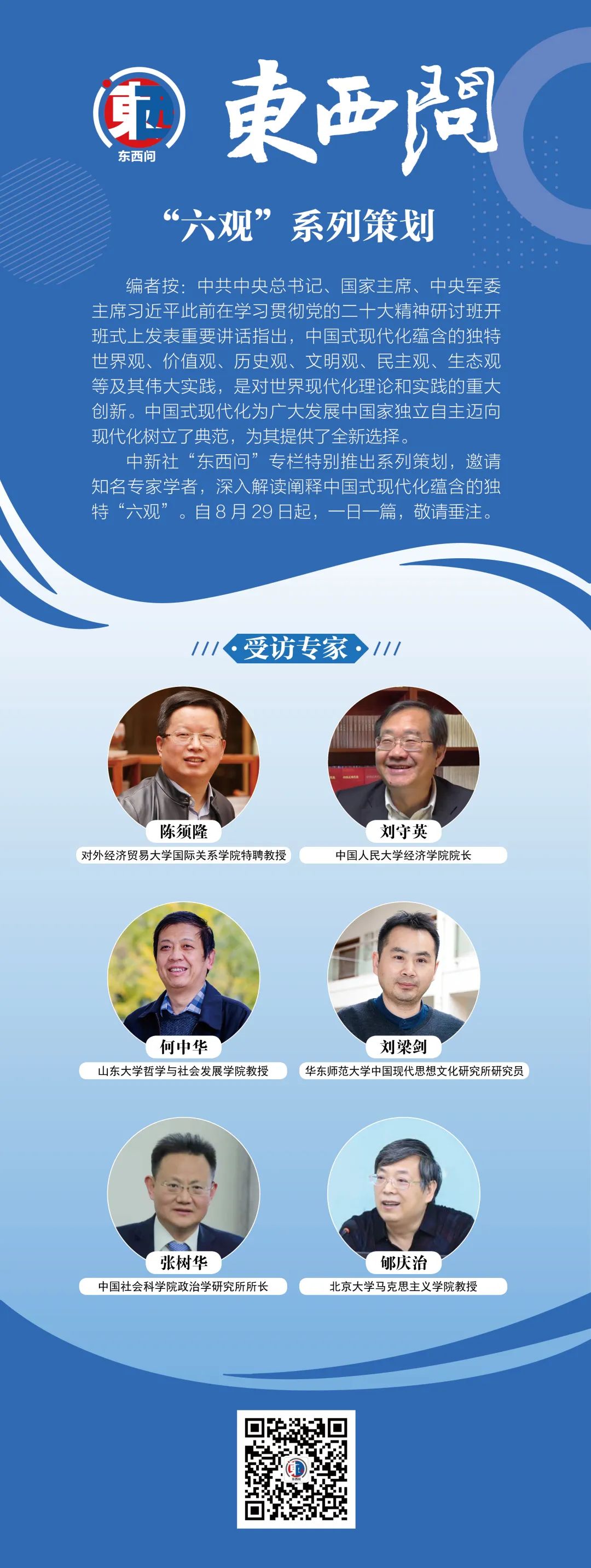 中新社“東西問”專欄特別推出系列策劃,邀請知名專家學者,深入解讀闡釋中國式現(xiàn)代化蘊含的獨特“六觀”?! ?月29日起播發(fā),一天一篇,敬請垂注。