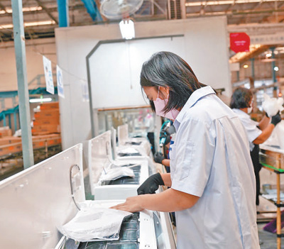 泰國員工在海爾空調生產(chǎn)線進行操作。