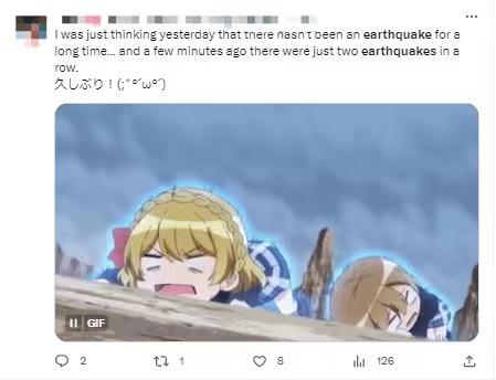 有網(wǎng)友在社交媒體上表示,“昨天還在想(日本)很久沒發(fā)生地震了,幾分鐘前卻連續(xù)發(fā)生了兩次地震?!?/p>