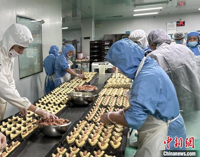 30年來,羅莎蛋糕已從湖南走向全中國,擁有300多家門店和2000多個員工。圖為員工在工廠做面包?!⒙?攝