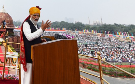8月15日,印度總理莫迪在德里出席獨(dú)立日慶?;顒?dòng)時(shí)發(fā)表講話。新華社發(fā)