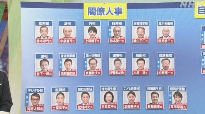 從調(diào)整結(jié)果來看,總共有11人首次進(jìn)入內(nèi)閣,包括總務(wù)大臣鈴木淳司、文部科學(xué)大臣盛山正仁以及防衛(wèi)大臣木原稔等,表面看起來確實很“新”。