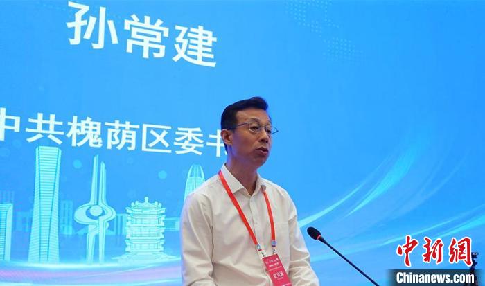 圖為槐蔭區(qū)委書記孫常建在開幕式濟(jì)南會(huì)場(chǎng)上發(fā)表致辭。濟(jì)南市槐蔭區(qū) 供圖