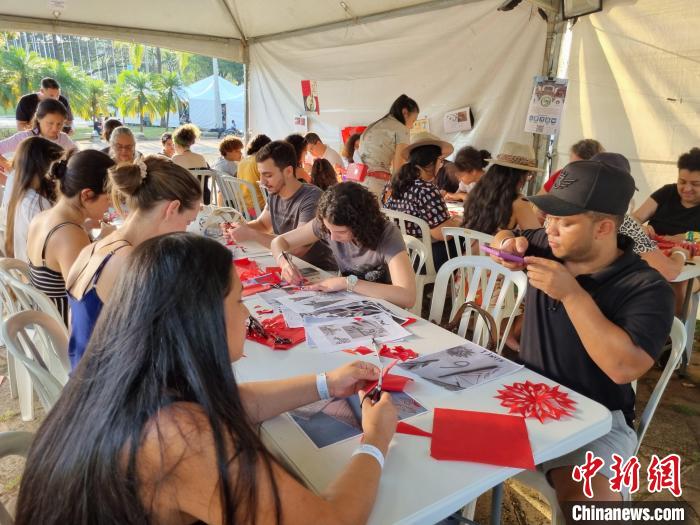 當(dāng)?shù)貢r(shí)間9月16日,坎皮納斯市民在當(dāng)?shù)仄咸蜒拦珗@體驗(yàn)中國(guó)剪紙、書法、制作燈籠等文化活動(dòng)??财ぜ{斯大學(xué)孔院供圖