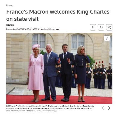 中新網(wǎng)9月21日電 綜合法新社、路透社報道,當(dāng)?shù)貢r間20日,英國國王查爾斯三世抵達法國,進行自其登基后為期三天的首次國事訪問。