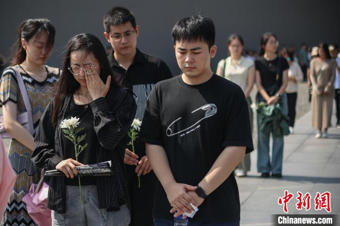 9月18日,在防空警報聲中,侵華日軍南京大屠殺遇難同胞紀念館中的參觀者駐足默哀?!°蟛?攝