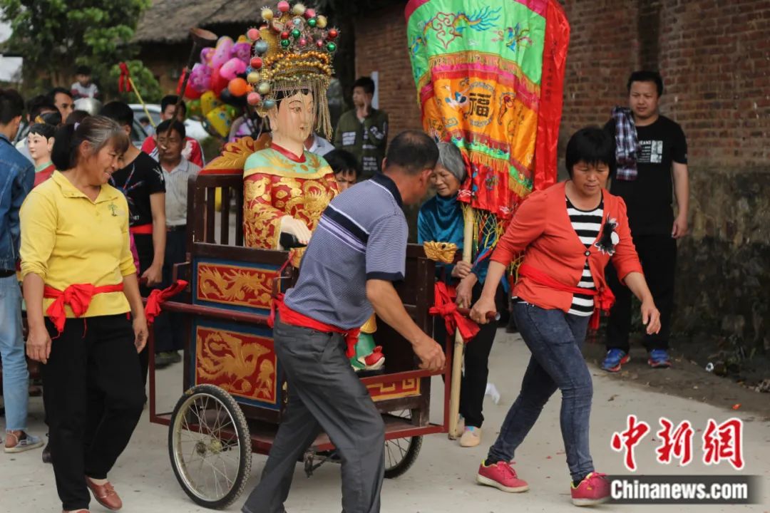 冼夫人(神像)在信眾的簇?fù)硐卵惨暠就粒瑸檫@里的人們帶來(lái)心靈的慰藉。蘇崢 攝