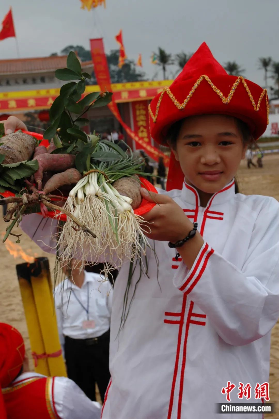 ??谛」媚镉么菏[、地瓜和桑桔等農(nóng)家土特產(chǎn)品祭祀“嶺南圣母”冼夫人。王辛莉 攝