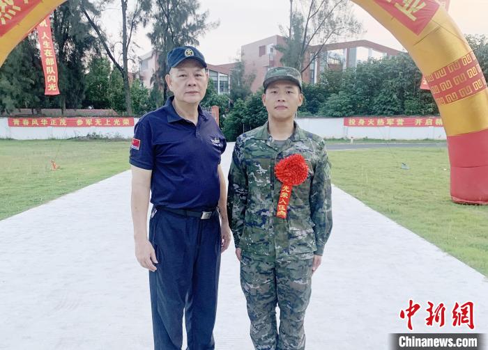 圖為潘雄歡送今年入伍的侄兒潘宇龍。漳州市退役軍人事務局 供圖