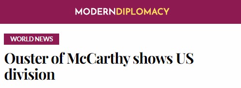 歐洲《現(xiàn)代外交》網(wǎng)站在6日的報(bào)道指出,凱文·麥卡錫(Kevin McCarthy)的美國(guó)國(guó)會(huì)眾議院議長(zhǎng)職位于本月3日被罷免,成為自1875年以來(lái)任期最短的議長(zhǎng)。據(jù)相關(guān)消息,在麥卡錫與民主黨人合作通過(guò)短期撥款法案以避免美國(guó)政府停擺后,少數(shù)極右翼共和黨人與民主黨人一道罷免了這位加利福尼亞州共和黨人。