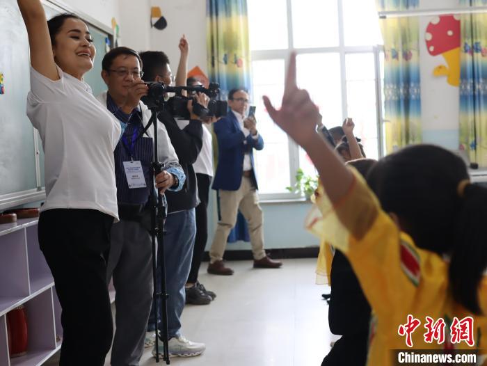 近日,泰國記者協(xié)會主席孟孔(左二)走進喀什地區(qū)疏附縣吾庫薩克鎮(zhèn)七村學校參訪。 中新社記者 薄雯雯 攝