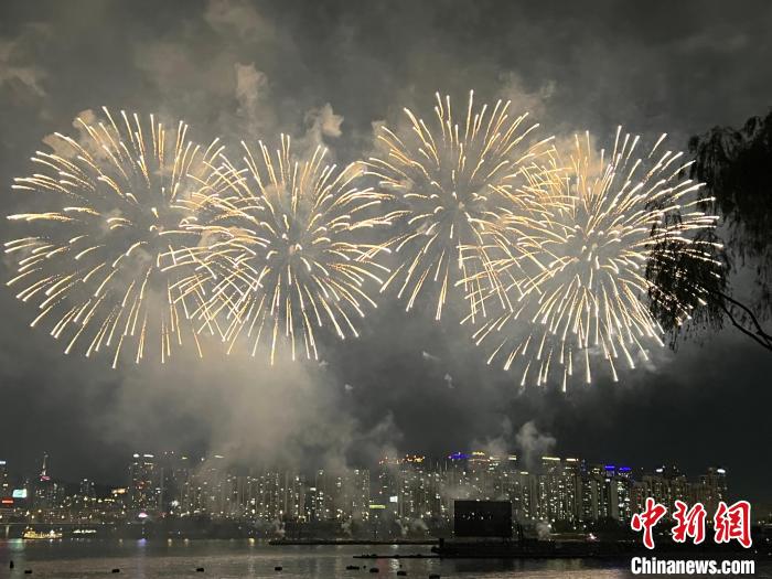 19時20分許,煙花隨著主持人的倒計時口令相繼綻放,拉開煙花秀表演的序幕。