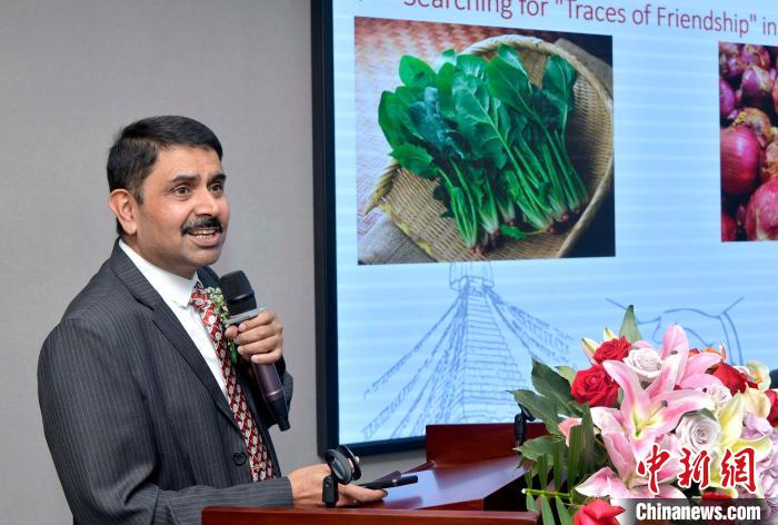 說著一口流利普通話的尼泊爾研修班學(xué)員代表、尼中文教協(xié)會(huì)秘書長(zhǎng)蒂利普·普拉薩德·阿查利亞就“尼中關(guān)系的不同維度”發(fā)言。他從飲食、建筑、文化、歷史等多方面闡述尼中兩國(guó)友好的悠久歷史。他說:“兩國(guó)的關(guān)系具有更廣闊、更親近、更自然、更加充滿活力的特點(diǎn),應(yīng)該成為‘親戚’。”