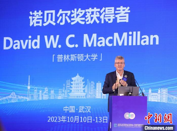 10月11日,2021年諾貝爾化學(xué)獎(jiǎng)獲得者戴維·麥克米倫(David W. C. MacMillan)在2023年國(guó)際光化學(xué)技術(shù)與產(chǎn)業(yè)大會(huì)上發(fā)言?!垥?攝