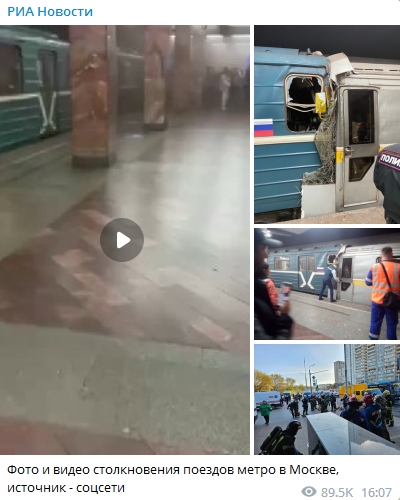 莫斯科市長(zhǎng)索比亞寧在社交媒體上稱(chēng),事故導(dǎo)致一名列車(chē)司機(jī)受傷,正在為其提供醫(yī)療救助;沒(méi)有乘客重傷。
