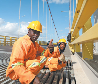 據(jù)介紹,馬普托大橋項(xiàng)目在建設(shè)過程中踐行屬地化經(jīng)營理念,建設(shè)最高峰期雇傭當(dāng)?shù)貑T工超過3000人,焊工、車工、鋼筋工、機(jī)械操作手等一大批專業(yè)技術(shù)人員通過大橋項(xiàng)目提升了職業(yè)技能?!霸诖髽蝽?xiàng)目上學(xué)到的一技之長幫我找到了新的工作。”莫桑比克青年菲爾德普卡談及在馬普托大橋項(xiàng)目工作的收獲,臉上洋溢著幸福的笑容。