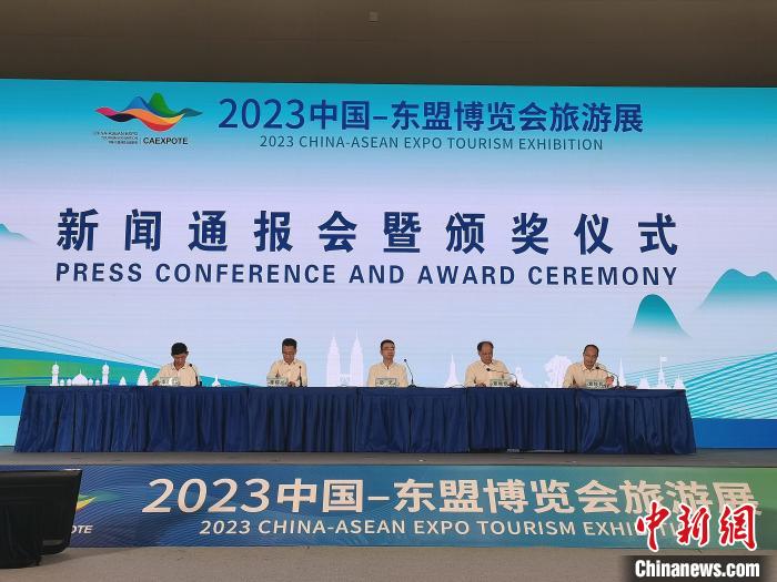 10月15日,2023中國(guó)—東盟博覽會(huì)旅游展新聞通報(bào)會(huì)暨頒獎(jiǎng)儀式舉行。唐蔚晴 攝