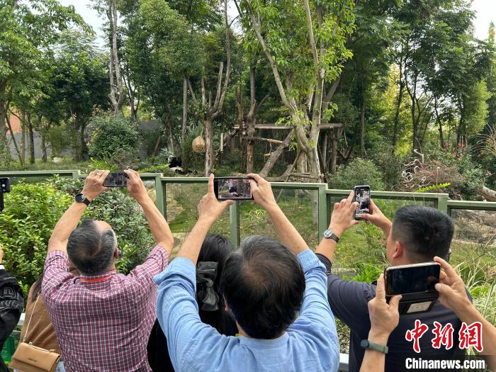 臺(tái)胞社團(tuán)領(lǐng)袖成都驚喜“邂逅”大熊貓:大熊貓是兩岸友好交流的象征