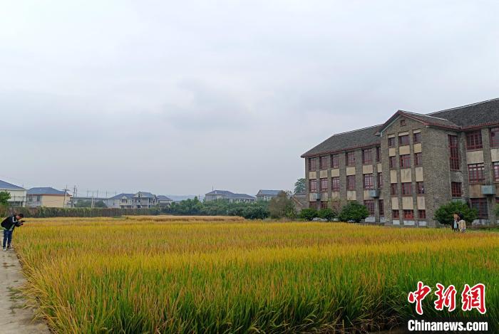 “1964年,當(dāng)時(shí)還是青年教師的袁隆平,就是在這塊試驗(yàn)田發(fā)現(xiàn)了水稻‘天然雄性不育株’,從此開(kāi)啟了雜交水稻研究試驗(yàn)。”順著安江農(nóng)校紀(jì)念園管理中心主任謝軍手指的方向望去,一片規(guī)劃整齊的試驗(yàn)田被分成若干塊,金黃的稻穗隨風(fēng)搖曳。